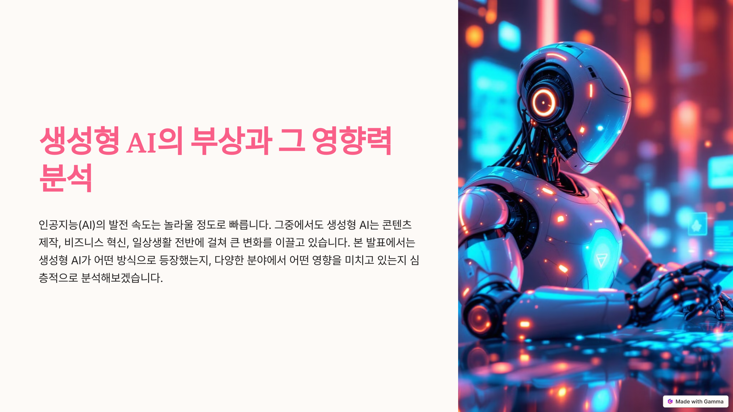 생성형 AI는 우리 생활에 빠르게 스며들며 다양한 변화를 일으키고 있습니다. 앞으로도 AI의 발전과 함께 더 많은 혁신적인 변화를 기대해봅니다.